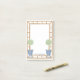 This chic post it note pad features a round olive topiary with a blue and white striped bow in a chinoiserie pot. The border around the edge is a  bamboo frame. You can personalise with your name.