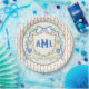 This chic design features a Bamboo Crest with a blue bow surrounded by olive tree topiaries in chinoiserie pots. There is a bamboo striped pattern in the background. You can personalise with your monogram.