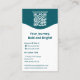 Back page: Top to bottom: At the top, within the teal waveform, is the QR code with CTA. The next block features a tagline that guides the services offered: "Your Journey, Bold and Bright!" followed by an invitation to connect and share on Linkedin and Instagram. The final block provides contact information. Replace the initials, text, and link details to make the business card work for you. For more branding ideas, visit www.KBMD3signs.com or contact us at info@KBMD3signs.com for assistance with customisation or custom design.