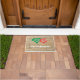 Faux bamboo reed mat background with tropical hibiscus flower and monstera leaf design for your home, beach house, or backyard tiki hut! Edit the text for your name.