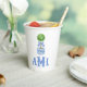 This chic design features a round topiary with a blue and white striped bow in a chinoiserie pot. You can personalise with your name and monogram.