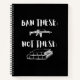 Typography style notebook advocating to ban assault weapons not books in our schools. White text with white AR-15 and book graphics on black background.