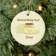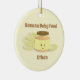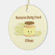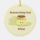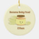 Ornament with a smiling jar of banana baby food. The character has slices of bananas behind it. The design includes the words “Banana Baby Food” and a customisable name.
