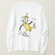 Cheerful cartoon banana character with big eyes, gloves, and sneakers, waving and dancing.