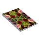 The original pattern by HomeWare on this Notebook was created from an original photograph of a banana flower. The photo has been repeated to form this tropical pattern. The colours are straight from nature, with an intricate background of yellow green, unripe bananas and the rich, dark reddish brown of the flower petals, called bracts, curving around in front. Beneath every layer lies an orderly row of little yellow-tipped fronds. These are the buds that eventually become bananas. The petals are a lighter, dusty pink colour as the layers unfold towards the heart of the flower.