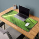The abstract, original artwork on this Desk Mat, in shades of natural yellow greens, is an original closeup photograph by MaeFlowers of a leaf on a banana tree. Sunlight highlights the details of the banana leaf, as its curves fall into shadows.