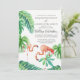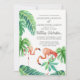Banana Leaf Watercolor Pink Flamingo Beach Art Invitation
