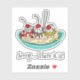 Hand drawn cartoon ice cream sundae with chocolate, strawberries, pineapple, cherries and whipped cream party stickers. Funny ice cream pun, "Scoop, there it is."