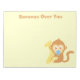 Cute cartoon baby monkey biting on a blue pacifier and holding on to a banana. Does it know that it need to let go of the pacifier to eat the banana? Funny text reads "Bananas Over You." For anyone who loves cute cartoons.
