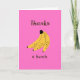 Cute funny casual thank you card. The front features a handdrawn bunch of bananas with Thanks a bunch written in the front on a pink background. Blank inside for your own message