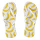 Flip flops in an all-over print of golden yellow bananas on a white background - a fun, tropical themed, summer textile design