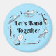 Let's band together text surrounded by a circle of instruments and music notation is a musical twist on a common phrase and a funny gift design for concert and marching band musicians.