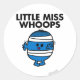 Poor Little Miss Whoops! Wrapped in bandages covering her forehead and her mouth she looks to be in extraordinary pain. Just like her Mr. Men counterpart Mr. Bump, Little Miss Whoops appears to be very accident prone. Be sure to move the furniture and cover any sharp edges when she comes over. If you have friends or loved ones who are always covered in some sort of bandage (small or large) this would make a great gaga gift for them. It may remind them to watch out for protruding cabinets and misplaced coffee tables!