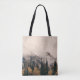 Banff national park foggy mountains and forest in tote bag