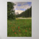 Indian Paintbrush wildflowers in bloom in Banff National Park. Castle Mountain is seen in the distant background.