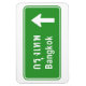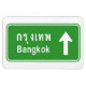 Funny Bangkok, Thailand Ahead Bilingual Thai Highway Traffic Sign written in Thai and English Language Scripts.