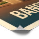 Experience the magical allure of Bangkok by night with this stunning vintage-style travel poster. This high-definition illustration captures the majestic Grand Palace and Wat Phra Kaew bathed in warm light, set against a deep indigo and twilight purple sky. Every intricate spire and gold detail glows, highlighting the rich cultural heritage and iconic tiered roofs. A perfect focal point for creating a sophisticated, exotic atmosphere in your home, office, or vacation space. An ideal gift for world travelers and lovers of Asian night scenes and modern architectural design.