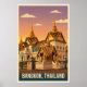 Bangkok Grand Palace Night Vintage Travel Poster