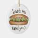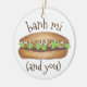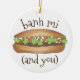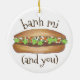 Ornament features an original marker illustration of a delicious Vietnamese pork banh mi sandwich, with BANH MI AND YOU in a fun font.