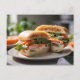 This is an AI generated image. I somehow learned about Banh Mi sandwich so I had to make a design for it. I thought it would be good to have the sandwich slices and on a plate with bright lighting.