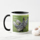 Beautiful display of black and white bantam chicken on two tone mug with black and rim.! Great for all you chicken collectors!