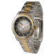 Very good quality watch that looks good whether dressing up or down. The band is sturdy. The watch is rather large so might not work for smaller folks. Recommended as a good gift. Printing is just a touch light but adds a nice touch of personalization.