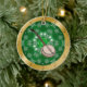 Banjo Christmas Ornament Silver & Green with Musical Notes on Gold Background