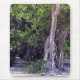 Banyan Street in Boca Grande, Florida is one of the loveliest streets for a leisurely stroll. The grand old banyan trees form an arc over the entire length of the block, making it a shady spot on the sunny Gulf Coast. The original photograph by MaeFlowers on this Mouse Pad is a view looking down the street and the walkway, divided by a row of banyan trees. The trees' trunks are shades of greys and browns, with many sculptural details formed as they grow. The abundant green leaves and branches nearly fill the photo. Dappled sunlight highlights the footpath of light coloured crushed stone.