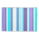 Lavender, purple, turquoise and white colorway. This oversized hibiscus flower was inspired by traditional pareaus worn for the hula. The colours are bright and coordinate with the stripe pattern on the reverse side. The square pillows are reversible to a positive-negative version of the hibiscus design. The lumbar pillows are reversible to a coordinated multi coloured beach stripe. These designs come in several colorways.
