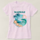 Modern illustration of a big ocean wave on a tropical island with palm tress and the word BANZAI! for the surfers.