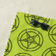 Baphomet Pentagram Beach Towel In Lime Green. Here's a nice, satanic and colourful beach towel for you to take on vacation, to the pool, stream, lake or ocean! In pretty lime green, this towel features a pattern of Baphomet pentagrams! Perfect for a satanic holiday! Give as a gift to a satanist, occultist, witch or metalhead that likes bright colours!