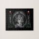 This Egyptian-themed representation harkens back to the first manifestation of Baphomet as Amon, the Goat / Ram-headed god of fertility, physical and mental. Both sigil versions are included herein super-imposed. The black obelisks which frame this Infernal Throne also act as light houses illuminating the world with undefiled wisdom. The Egyptian heiroglyphs and Enochian characters assert the nature of The Self as God absolute and Supreme.