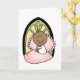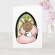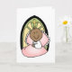 An African American baby girl wearing a pink gown poses against a church window with a cross on baptism design baby girl items that you can customise yourself on the spot with a name or other text.