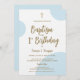 Baptism and First Birthday with Cross Blue Gold Invitation