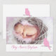Baptism baby girl owl bird photo invitation card