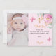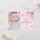 Baptism baby girl pink rose photo thank you card