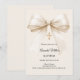 Baptism beige bow elegant neutral invitation