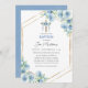 Baptism Blue Floral Draped Cross Boys Invitation