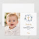 Baptism blue florals photo thank you card