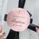 A blush pink gradient background. Decorated with confetti and a faux gold cross. Personalise and add a name and a date.