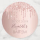 A rose gold background decorated with rose gold drips. Personalise and add a date and name/event. Dark rose gold coloured letters. Some confetti chips with name and date, others with a cross. Add your own photo on two of the chips.