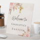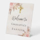 Baptism blush rose gold pampas grass cross welcome pedestal sign