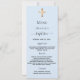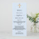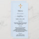 Baptism, christening reception menu card. Personalise and add a name, date and the menu. A light blue background and a golden cross.