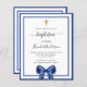 Baptism boy royal blue white bow invitation