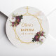 Baptism Burgundy Peonies Marble Gold Geometric Classic Round Sticker