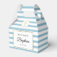 With a cute blue and white stripe background, this elegant baptism or christening favour box features an elegant faux gold foil border framing your event details set in chic typography and a special thank you message on the reverse. Designed by Thisisnotme©