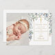 Baptism Christening Floral Foliage Photo Gold Thank You Card
