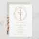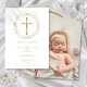 Baptism Christening Gold Cross Floral Photo Invitation