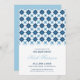 This modern and simple Baptism or Christening invite features a blue geometric pattern with a cross interwoven. Ideal for a boy's religious celebration, it can be customised with your child's name and the event details.