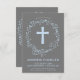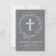 This modern Baptism or Christening invite features an elegant watercolor style blue floral wreath as well as a blue cross. Ideal for a baby boy's religious celebration, it can be customised with your child's name and the event details.